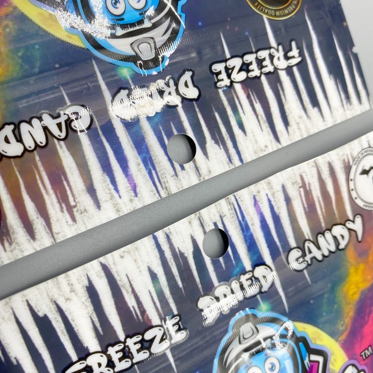凍干糖果袋采用了時尚的鐳射膜材質,結合自立袋設計及獨特的開窗特性,為現代消費者提供了一種既實用又具吸引力的包裝方案。