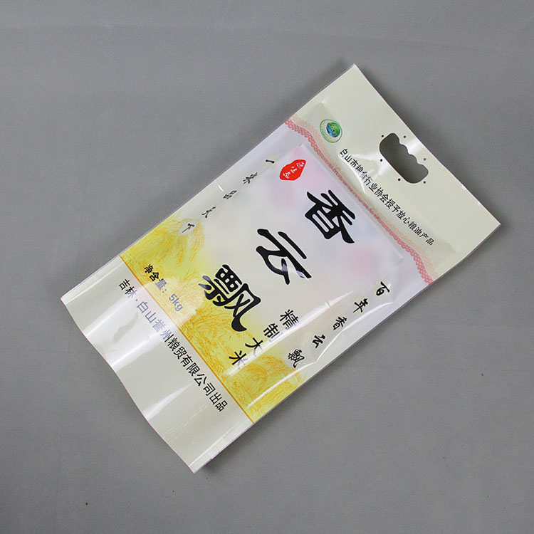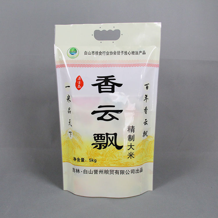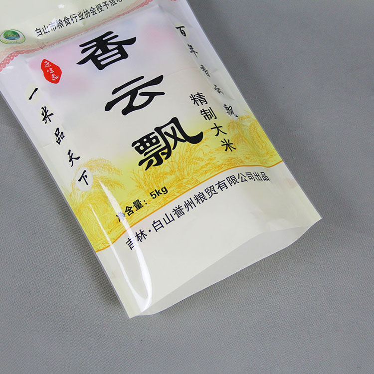 大米小米包裝袋有時候作為直接包裝,因此需要做成真空袋,又稱貼身防潮袋、鋁箔袋、鋁塑復合袋,其材質一般為PET/AL/CPE或PET/NY/AL/CPE.其中PET——印刷效果好,NY——透氧性低,AL——阻隔性強、不透光,CPE——包裝內層。膠水:水溶性膠水(更加衛生、環保、無溶劑殘留量)此產品具有良好的防靜電、隔氧、屏蔽、防潮、遮光功能及優良的熱封性。