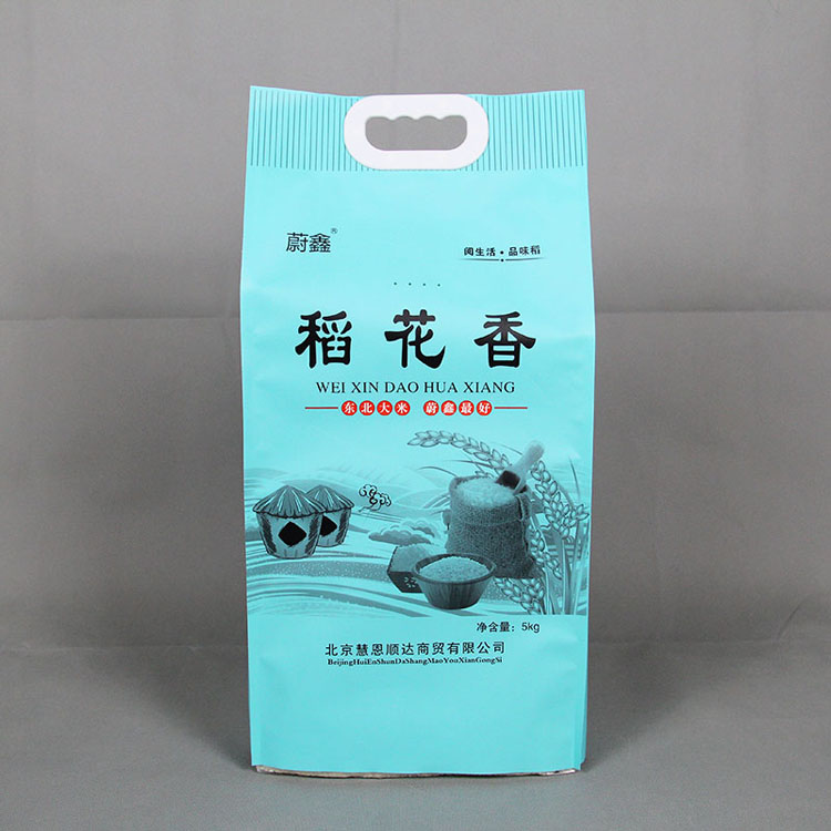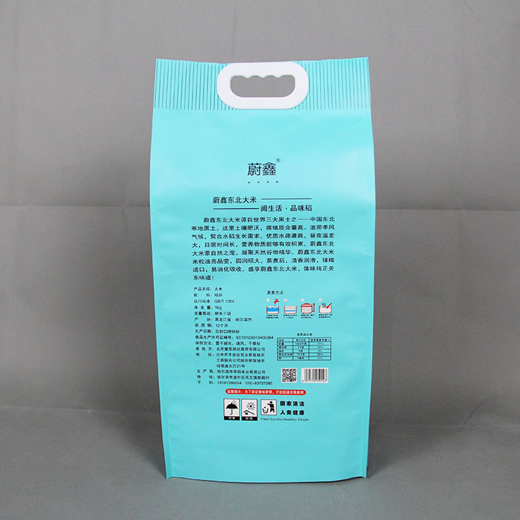 大米小米包裝袋有時候作為直接包裝,因此需要做成真空袋,又稱貼身防潮袋、鋁箔袋、鋁塑復合袋,其材質一般為PET/AL/CPE或PET/NY/AL/CPE.其中PET——印刷效果好,NY——透氧性低,AL——阻隔性強、不透光,CPE——包裝內層。膠水:水溶性膠水(更加衛生、環保、無溶劑殘留量)此產品具有良好的防靜電、隔氧、屏蔽、防潮、遮光功能及優良的熱封性。
