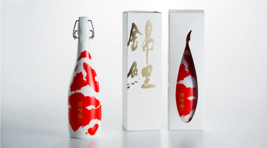 錦鯉作為日本的象征,將他用于包裝上是一個寓意非常好的創意,不單單是在日本,在中國錦鯉也有著很好的寓意;瓶身飄逸著錦鯉的紅白斑紋,配色讓人看著很舒服,瓶身圓潤酷似錦鯉身體;外包裝盒表面鏤空一錦鯉剪影,當酒瓶放于盒內能給人營造出一種錦鯉游水的趣味性。