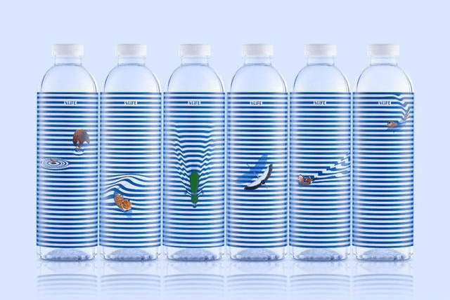 “這個設計很自然很動人”,藍色線條生動地模擬了這些野生動物與水源的互動,就像把一些大自然的時刻永久保留在每一瓶水上。每一瓶礦泉水都提醒著每一個飲水人“水是所有生物的源泉”,不多說一個字地強調了環保,這種設計著實動人。