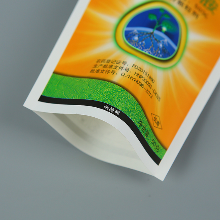 其次是自立袋:它的底部可以回折且有兩條封邊,它的底部可以撐開并自立,這種包裝袋就是自立袋。底部有回折并有2條封邊,左右各1條封邊,底部撐開后可以自立的包裝袋。