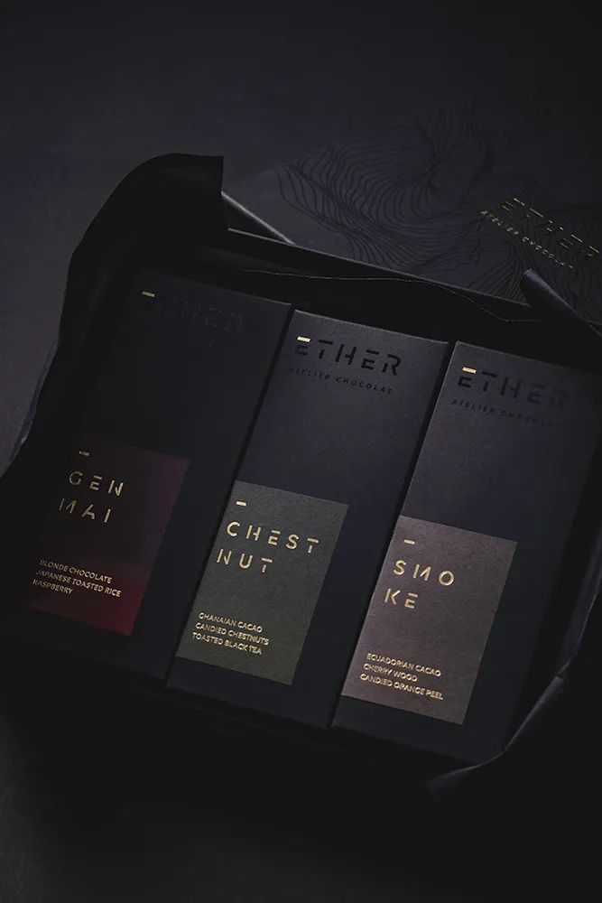 ether atelitr巧克力是來自印度的品牌,他的包裝設計使用微妙的黑色和金色美學以及設計的版式反應巧克力的純正,體現(xiàn)品牌輕奢的理念。豐富、安靜的細節(jié)化處理,反映出該巧克力的手工精神和該品牌的市場唯一性。