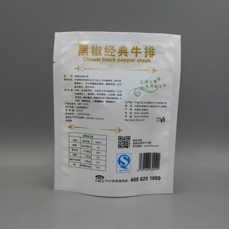 熟食包裝多需要進(jìn)行高溫蒸煮,蒸煮袋多用三層材料復(fù)合而成,具有代表性的蒸煮袋結(jié)構(gòu)是:外層為聚酯膜,作加強(qiáng)用;中層為鋁箔,作防光、防濕和防漏氣用;內(nèi)層為聚烯烴膜(如聚丙烯膜),作熱合和接觸食品用。
