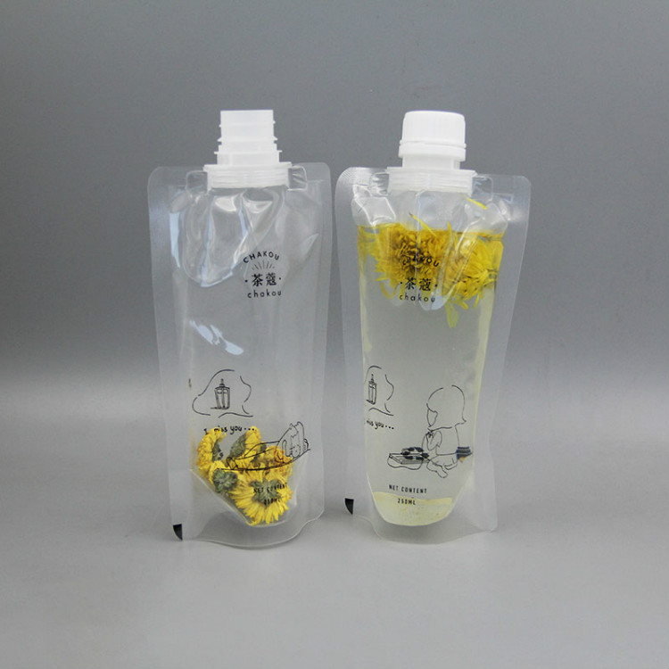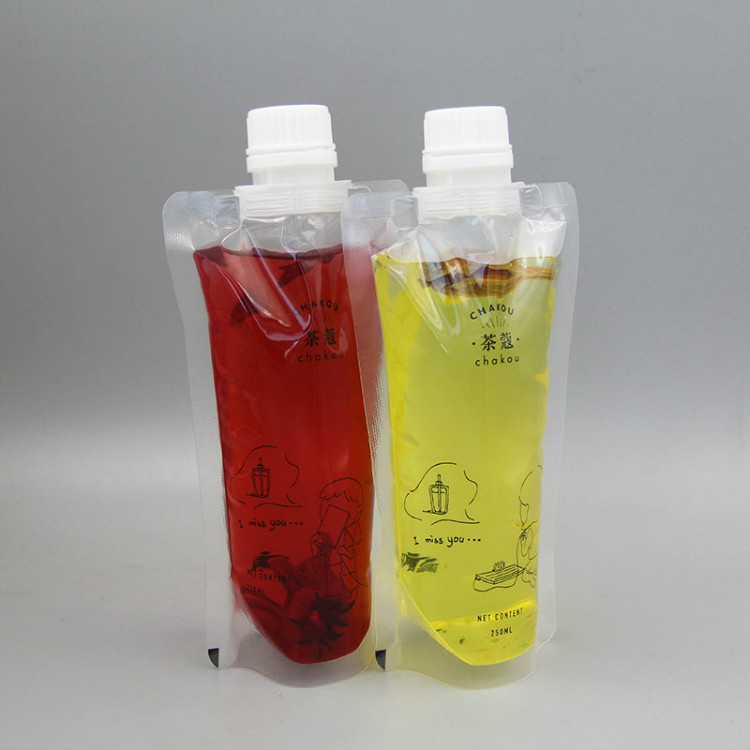 吸嘴袋是在自立袋的基礎上發展而來的一種新興的飲料、果凍包裝袋。吸嘴袋的結構主要分為兩部分:吸嘴和自立袋。自立袋部分與普通四封邊自立袋在構造上是一致的但一般采用復合材料以符合不同食品包裝的要求。吸嘴部分可視為一般瓶口加裝吸管。兩部分緊密結合形成支持吸食的飲料包裝,而且由于是軟包裝,不存在吸食困難的情況,封口后內容物不易晃動,是一種非常理想的新式飲料包裝。