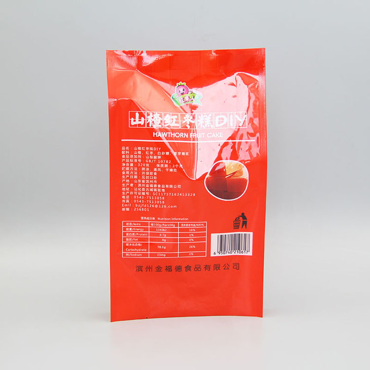 產(chǎn)品名稱:320g山楂紅棗糕+亮面塑料復(fù)合+四邊封包裝袋