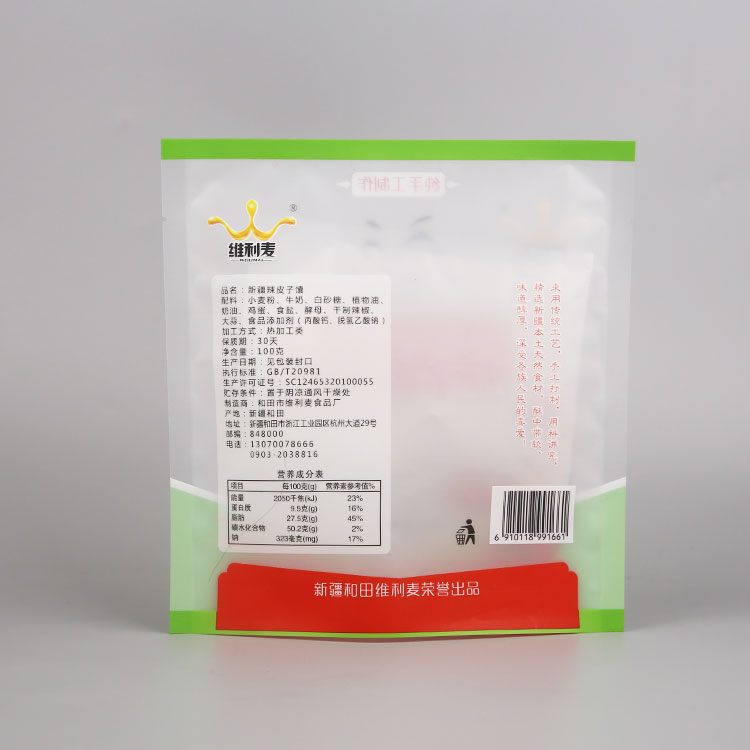 產(chǎn)品名稱:100g新疆辣皮子馕+亮面塑料復(fù)合+三邊封包裝袋