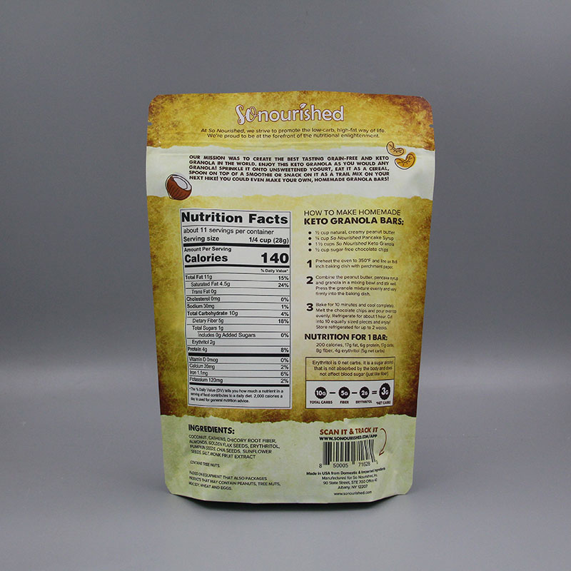 自立袋是一種相對新穎的包裝形式,在提升產品檔次、強化貨架視覺效果、攜帶輕便、使用便利、保鮮和可密封性等諸多方面占有優勢。自立袋由PET/foil/PET/PE結構層壓而成,也可以有2層,3層等其他規格材質,根據包裝的不同產品而定,可根據需要增加隔氧保護層,降低透氧率,延長產品的貨架壽命期。